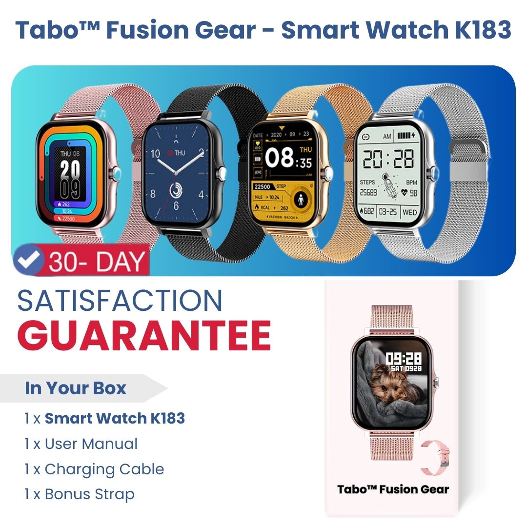 Try the Tabo™ Fusion Gear - Smart Watch K183 with confidence. If you're not satisfied within 30 days, get your money back. Stay connected and healthy risk-free.